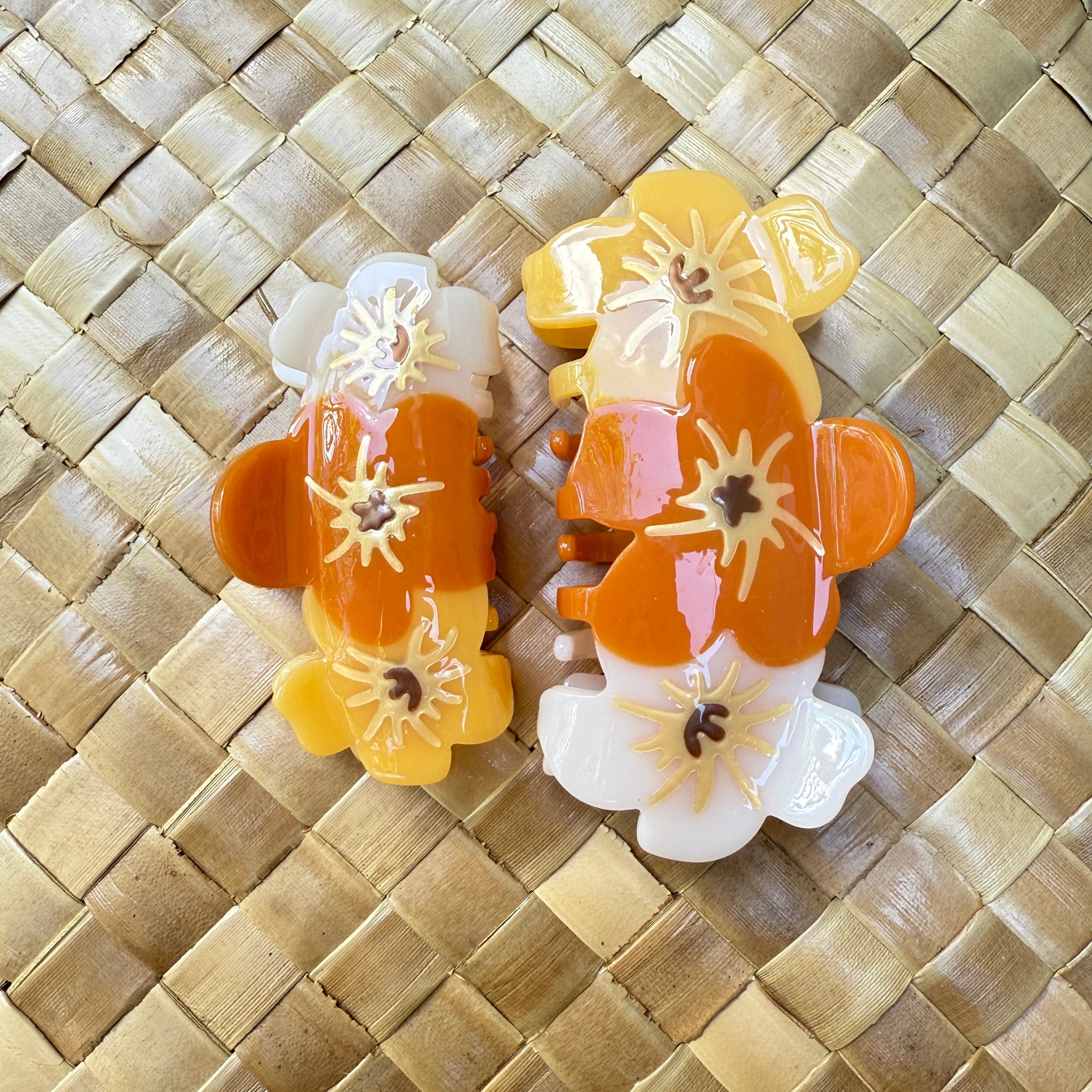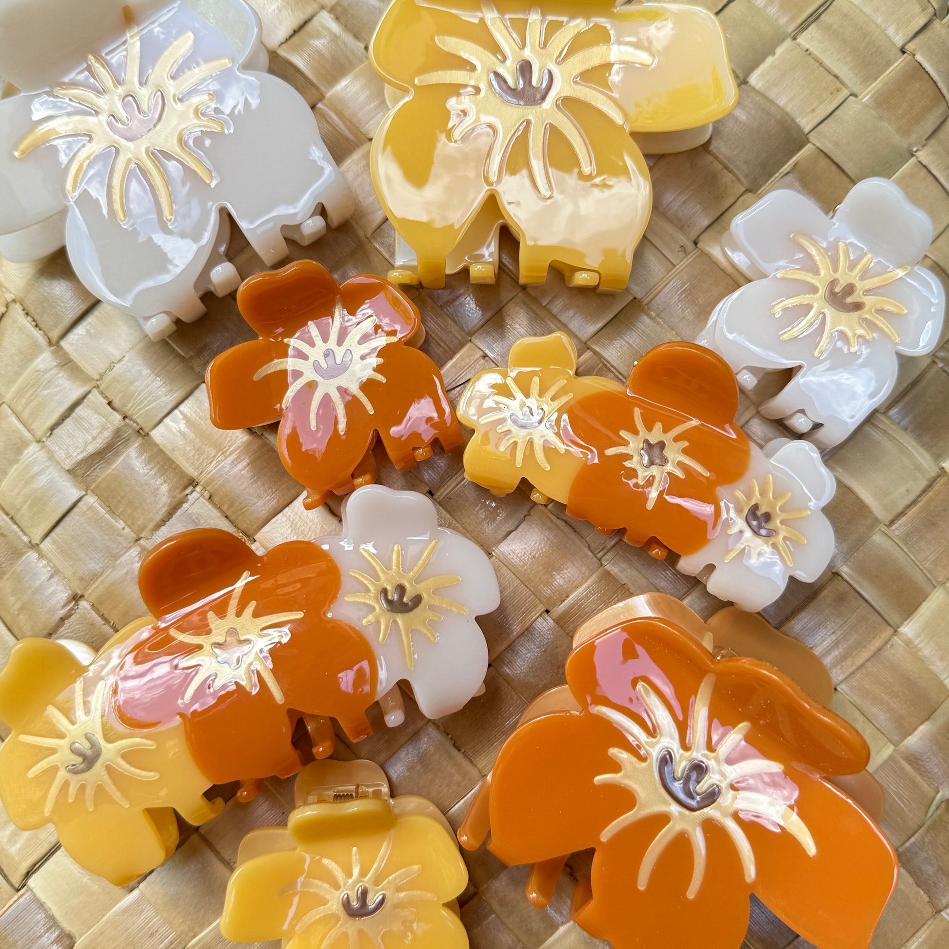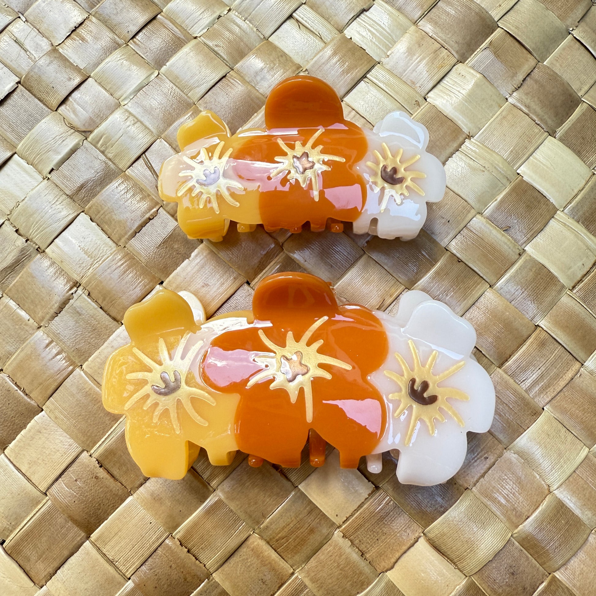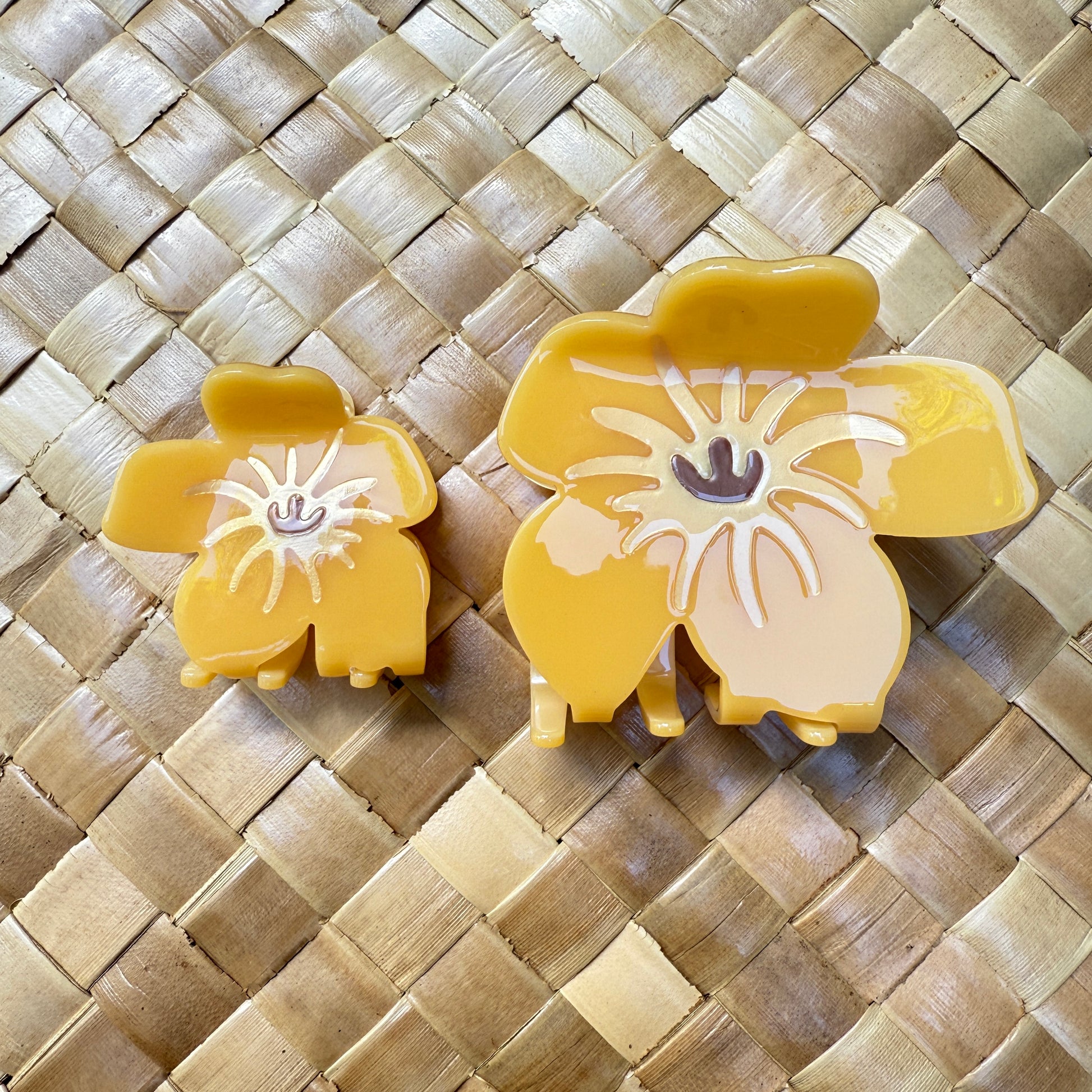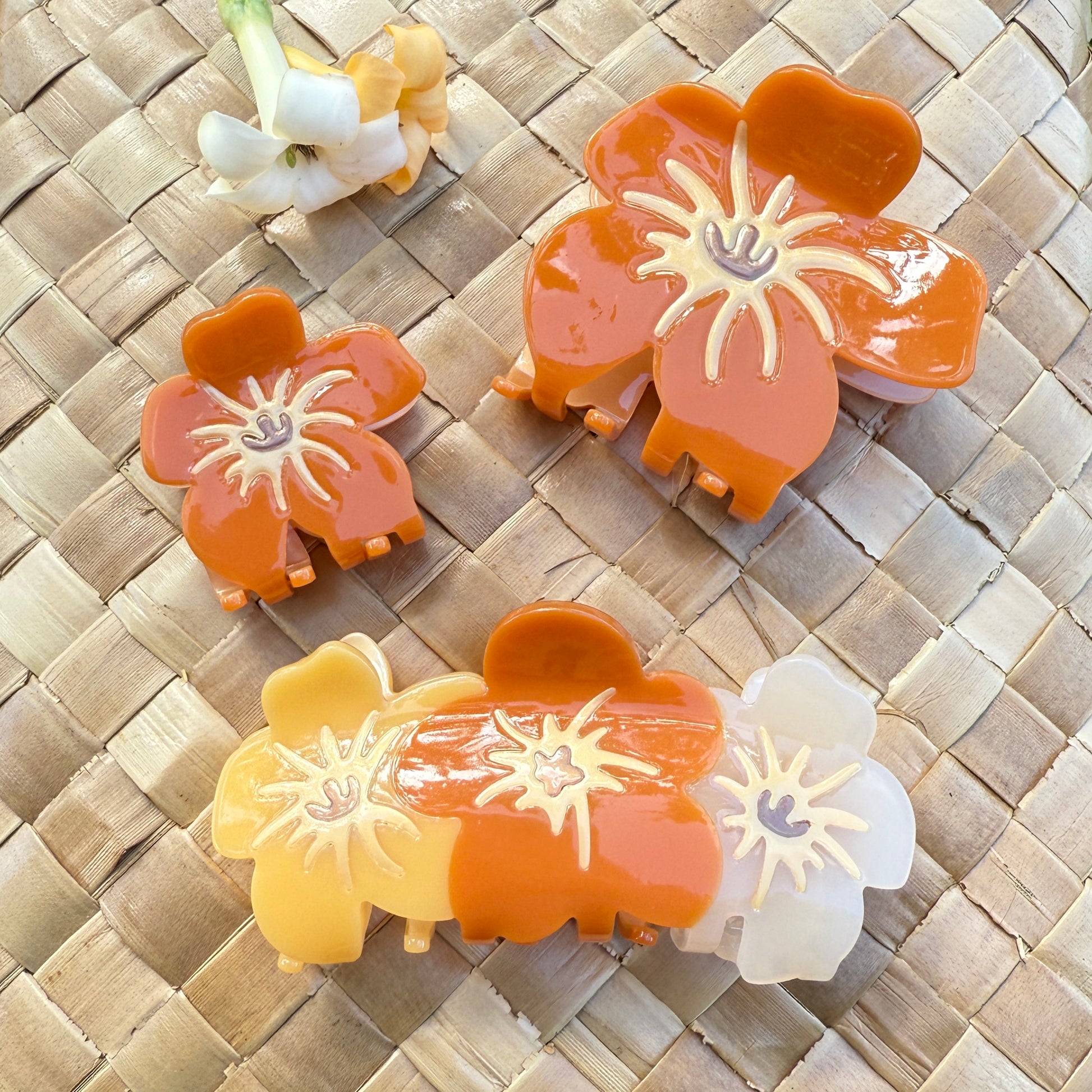 My favorite flower of all time is Puakenikeni. I love the smell and how the colors change as the flower ages. Although our hair claws do not emit the fragrance, the colors mimic the natural beauty.